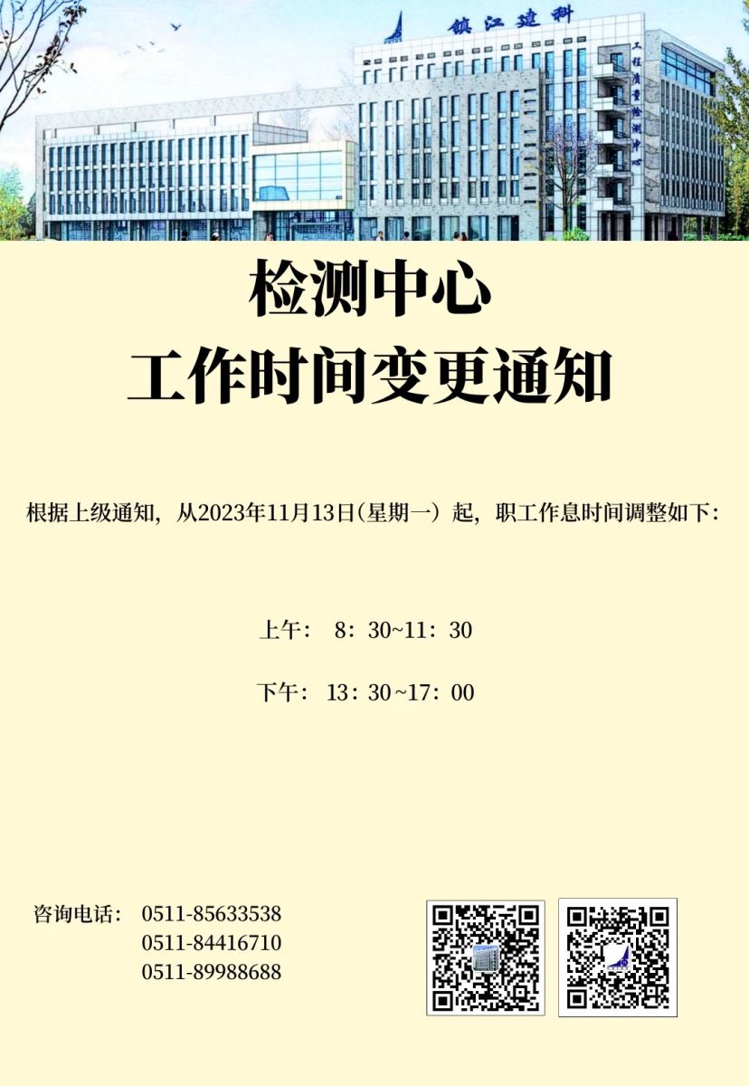 检测中心工作时间变更通知