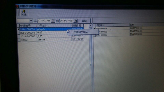 4.二维码打印 在图5的界面,在相应的委托编号上右击鼠标,即图9
