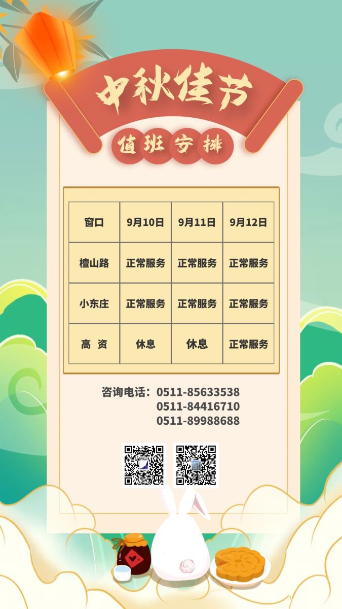 中秋节检测中心服务窗口值班计划